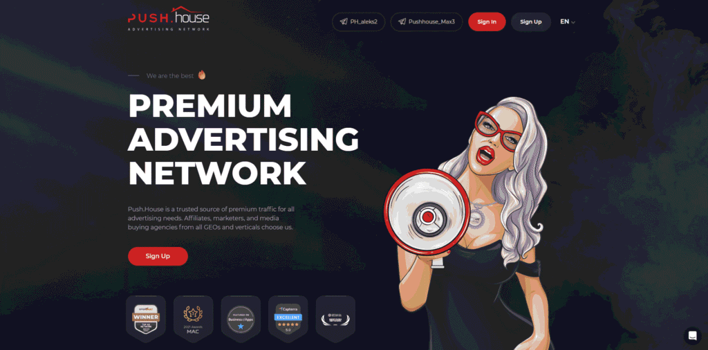 Push. House is a push notification network that focuses on helping affiliates and advertisers reach users through push ads. The network specialises in providing traffic through push notifications, in-page push, and on-click formats. Push. The house is perfect for affiliates who are looking to drive leads and conversions using push traffic, especially those working with mobile or web traffic.