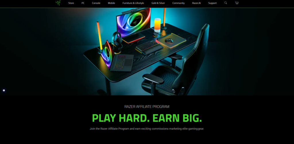 Razer is renowned for its high-quality gaming hardware and peripherals, including gaming mice, keyboards, headsets, and laptops. The Razer Affiliate Program allows partners to promote these premium products known for their performance and design among gamers.