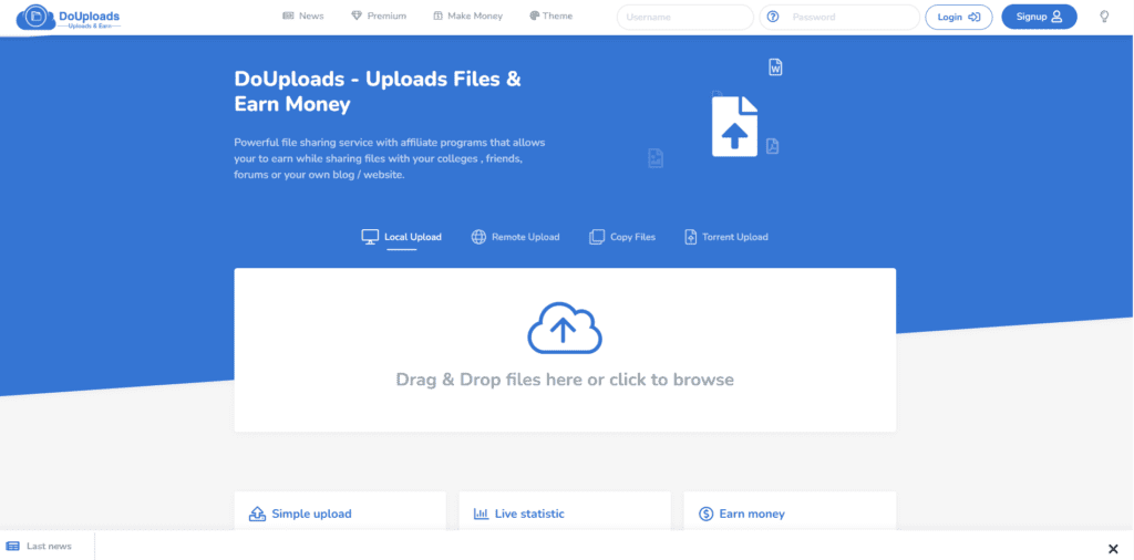 DoUploads is a top PPD platform that offers large payouts for pay-per-download services. You can make money while sharing files with your college buddies, forums, websites, etc., thanks to its robust file-sharing service and affiliate networks. DoUploads offers enormous storage with 100 GB of usable space for uploading and sharing your files. Additionally, it offers a support staff available around the clock to help you with any problems or inquiries.