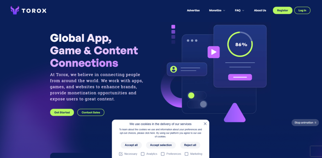 Torox is a leading Offerwall provider that helps publishers monetize users through “Rewarded Installs.” If you run a GPT (Get-Paid-To) site, a gaming app, or a rewards platform, Torox provides a wall of offers where users can earn virtual currency by installing apps and reaching certain levels. This “Rewarded CPI” model guarantees high engagement and is excellent for community-based websites.