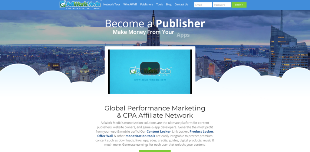 AdWork Media is a versatile CPA and PPI network known for its proprietary publisher platform and innovative tools like Gateway Managers (Content Lockers) and Product Lockers. While strong in mobile traffic monetization, they excel at converting desktop traffic through downloadable software offers. Their dashboard is packed with real-time tracking pixels and detailed analytics.