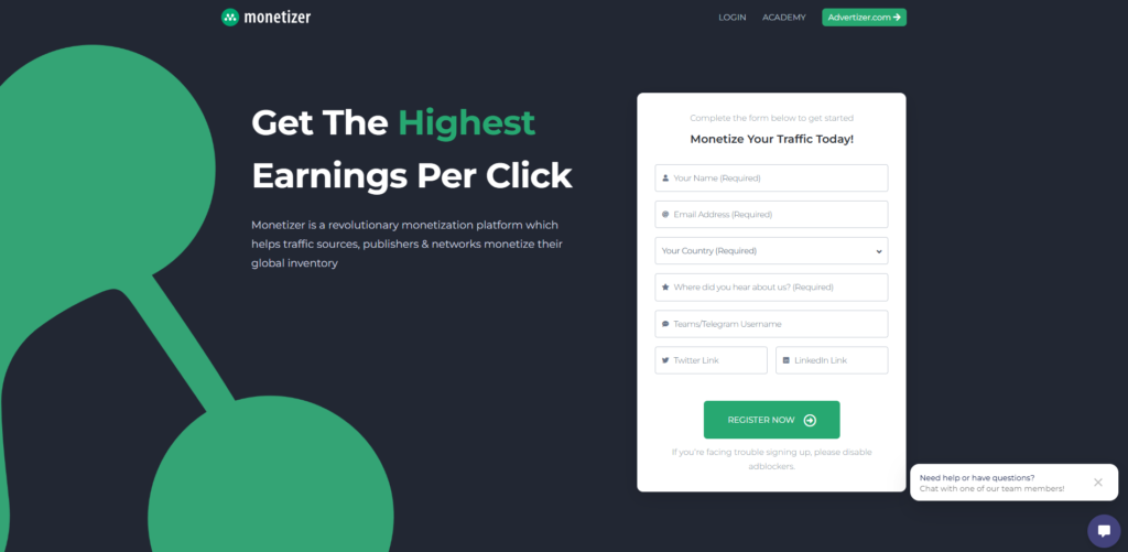 - Network Reach: Global (Monetizes traffic from all geos)