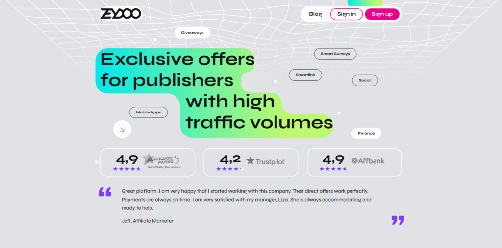 Zeydoo is a network created by the team behind PropellerAds, focused specifically on high-performance offers like Mobile Utilities, Surveys, and Software Installs. They are famous for their “Smart Surveys” and specialized “Reward” offers. For PPI, they have exclusive “Pre-Landers” for Antivirus and Cleaner apps that convert exceptionally well on Pop-Under traffic.