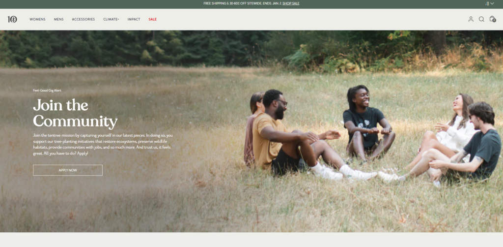 Tentree is a certified B Corp and lifestyle apparel brand that has planted over 100 million trees worldwide, with a mission to plant one billion by 2030. They create comfortable, “Earth-First” essentials for men, women, and children using only sustainable materials like organic cotton, TENCEL™, and recycled polyester. What makes them unique is their transparency; every item comes with a code that allows customers to track exactly where their ten trees are being planted. This gamified approach to sustainability builds incredible customer loyalty and makes the brand highly shareable on social media. For affiliates, Tentree is a strong converter because it offers accessible, stylish clothing that allows ordinary people to feel like they are making a tangible difference with every purchase.