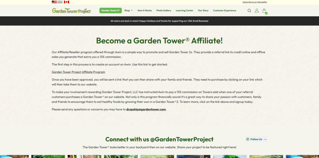 The Garden Tower Project is revolutionizing urban gardening with its flagship product, the Garden Tower 2. This innovative 50-plant vertical growing system features an integrated composting column, allowing users to turn kitchen scraps into organic fertilizer directly inside the planter. It is widely considered the most advanced vertical garden on the market, enabling people to grow significant amounts of food in as little as 4 square feet of space. The system is rotatable, accessible, and designed to optimize water and nutrient uptake, making it perfect for balconies, patios, and schools. Because the Garden Tower is a high-ticket item, affiliates have the potential to earn substantial commissions from a single sale. The product appeals strongly to preppers, urban homesteaders, and healthy living enthusiasts.