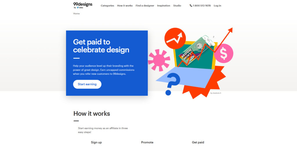 Affiliates benefit from a performance-based structure and bonuses, making 99designs ideal for those targeting businesses in need of creative solutions.