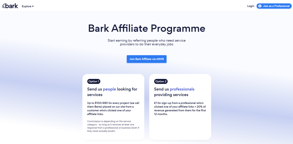 With its user-friendly interface and regional specialization, Bark offers affiliates a niche opportunity to promote high-demand professional services.