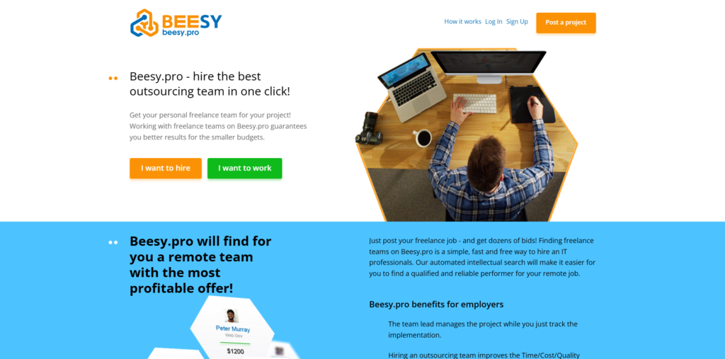 Beesy.pro is a specialized platform tailored for businesses seeking freelance IT professionals and development teams. Clients can outsource projects, hire entire teams, and even benefit from dedicated team lead services to ensure quality and timely delivery. Payment is made only after satisfaction with the completed project, adding a layer of trust and transparency.