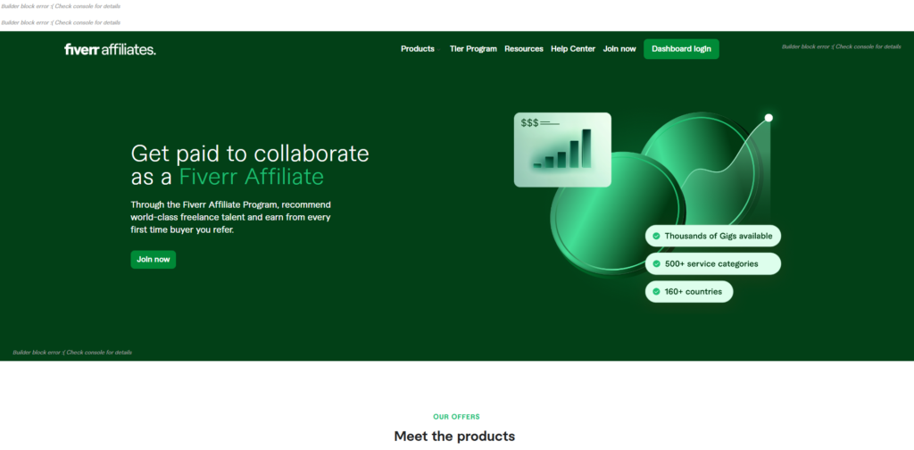 Fiverr offers multiple affiliate opportunities, including commission-based rewards for first-time purchases, hybrid models, and additional earnings from Fiverr Business and Fiverr Learn. With its advanced creatives, gig widgets, and marketing resources, Fiverr provides everything affiliates need to maximize their impact.