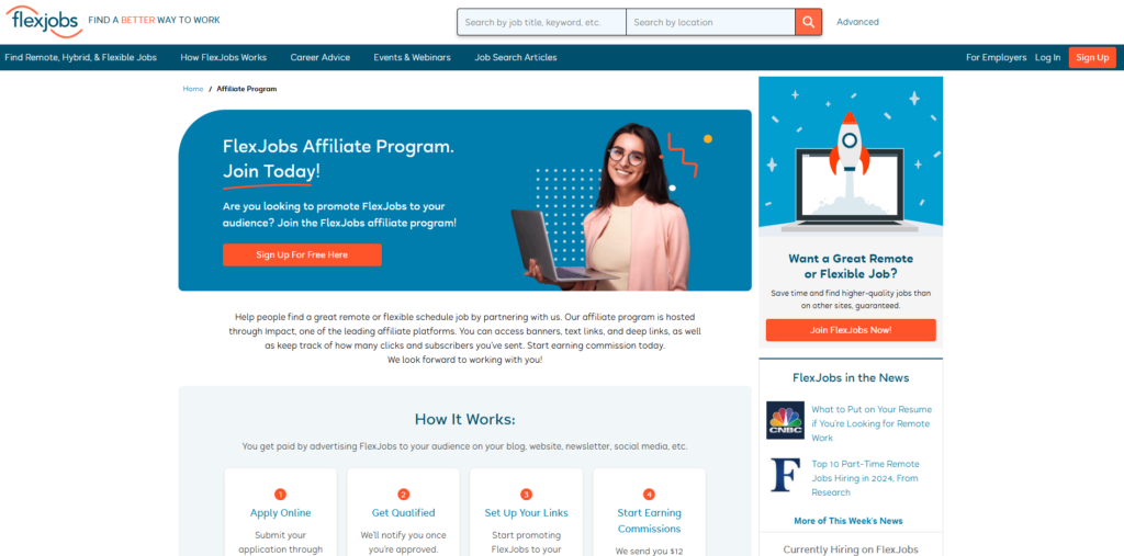 With its robust affiliate support and global user base, FlexJobs offers affiliates the chance to promote a widely recognized platform that serves a growing remote work audience.