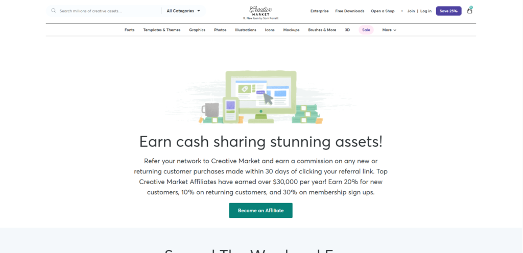 Affiliates promoting Creative Market can tap into a global audience of designers and businesses while earning recurring commissions.