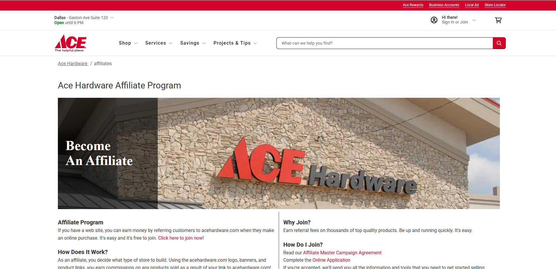 Ace Hardware positions itself as the “helpful place,” and its affiliate program reflects that local, service-oriented brand identity. They are excellent for the “maintenance and repair” side of the garage niche, stocking a vast array of fasteners, lubricants, weatherstripping, and smaller hand tools that big box stores might make hard to find. They carry major garage door opener brands and have a very loyal customer base who prefer shopping at Ace over larger, impersonal warehouses. Their “free store pickup” option is a huge conversion booster, allowing online affiliates to drive sales that customers can collect immediately in their neighborhood. This program works best for content focused on quick fixes, weekend projects, and tool reviews. The brand’s high trust factor means that click-through rates are often higher, even if the individual ticket size is smaller than a full cabinetry set.