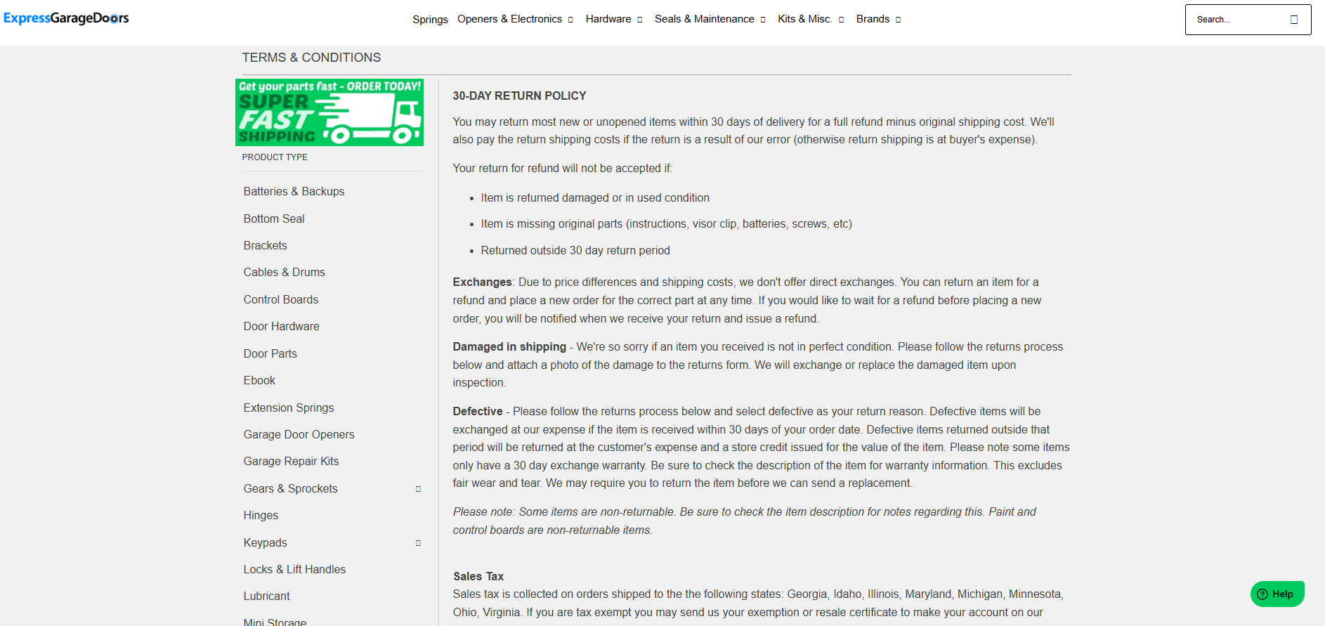 - Product Niche: Garage Door Parts, Repair Hardware, Springs & Rollers