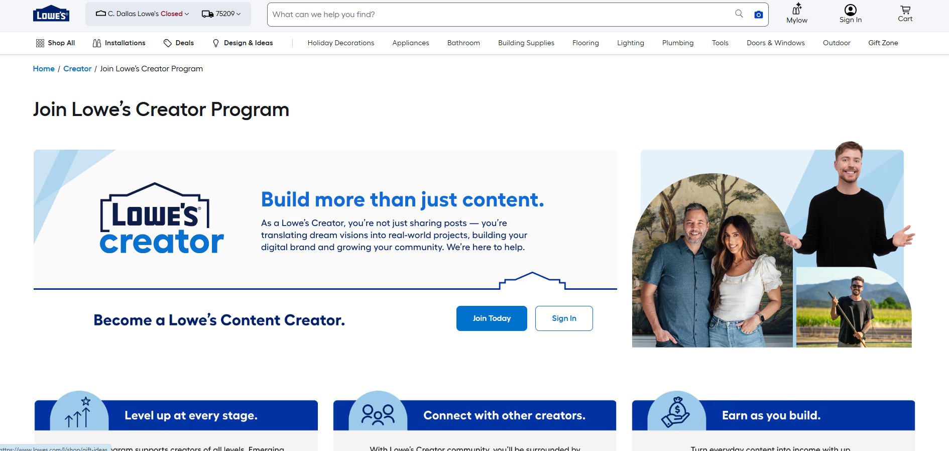 Lowe’s is the primary competitor to The Home Depot and offers a very similar range of high-quality garage products, including the exclusive Wayne Dalton garage door line. Recently, Lowe’s has revamped its approach to affiliate marketing with the Lowe’s Creator Program, which is designed specifically to court influencers and content creators with more competitive rates than standard legacy programs. They carry a massive selection of Craftsman tools, Kobalt storage cabinets, and smart garage hubs. This program is particularly good for affiliates who focus on Pro or semi-Pro DIY projects, as Lowe’s marketing often leans heavily into project completion and contractor-grade supplies. The 30-day attribution window offered in their Creator Program is a significant improvement over the standard 24-hour retail cookie, making it much more viable for bloggers writing in-depth reviews that might not result in an immediate click-and-buy scenario.