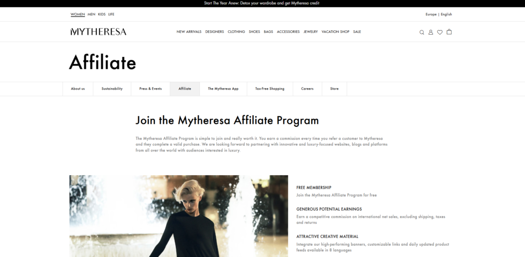 Founded in 2006 by Christoph and Susanne Botschen, Mytheresa began as a Munich-based boutique before evolving into a global luxury e-commerce leader. Today, it offers an exclusive edit of over 200 international designers, including Gucci, Balenciaga, and Jimmy Choo, catering to a sophisticated audience. With 1.2 million Instagram followers, the brand is a digital powerhouse, renowned for its “finest edit in luxury” and rapid delivery to over 130 countries. The site features everything from Parisian chic staples like Isabel Marant high-rise jeans to avant-garde runway pieces. Its affiliate program is highly sought after, offering partners the chance to monetise high-value baskets with competitive commissions. Ultimately, Mytheresa connects fashion-forward content creators with the world’s most coveted wardrobes.