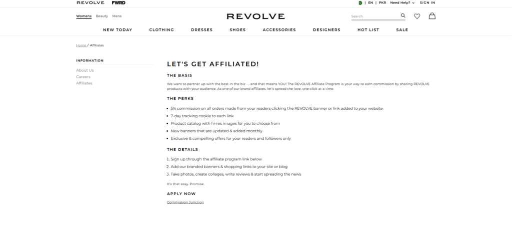 Revolve is the go-to destination for millennial and Gen Z fashion consumers, famous for its influencer-driven marketing and highly curated selection of trendy brands. It bridges the gap between high-end luxury and accessible premium fashion, featuring brands like Lovers + Friends, For Love & Lemons, and Free People. The site’s high-gloss aesthetic and “hot list” marketing make it incredibly high-converting for fashion bloggers and Instagrammers. Affiliates love Revolve for its reliable payouts, massive product range, and frequent site-wide sales that drive urgency. It is an essential program for any affiliate targeting a younger, trend-focused audience.