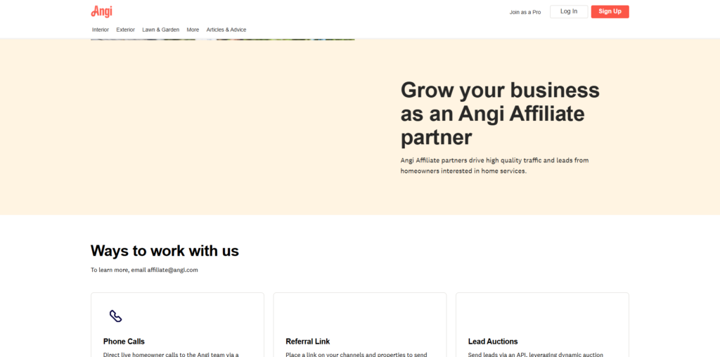 This is a pure lead generation program. Affiliates get paid when they send a user to Angi who submits a valid project request. It is exceptionally easy to convert because the user wants to find a pro; they aren’t being asked to pay Angi directly in many cases.