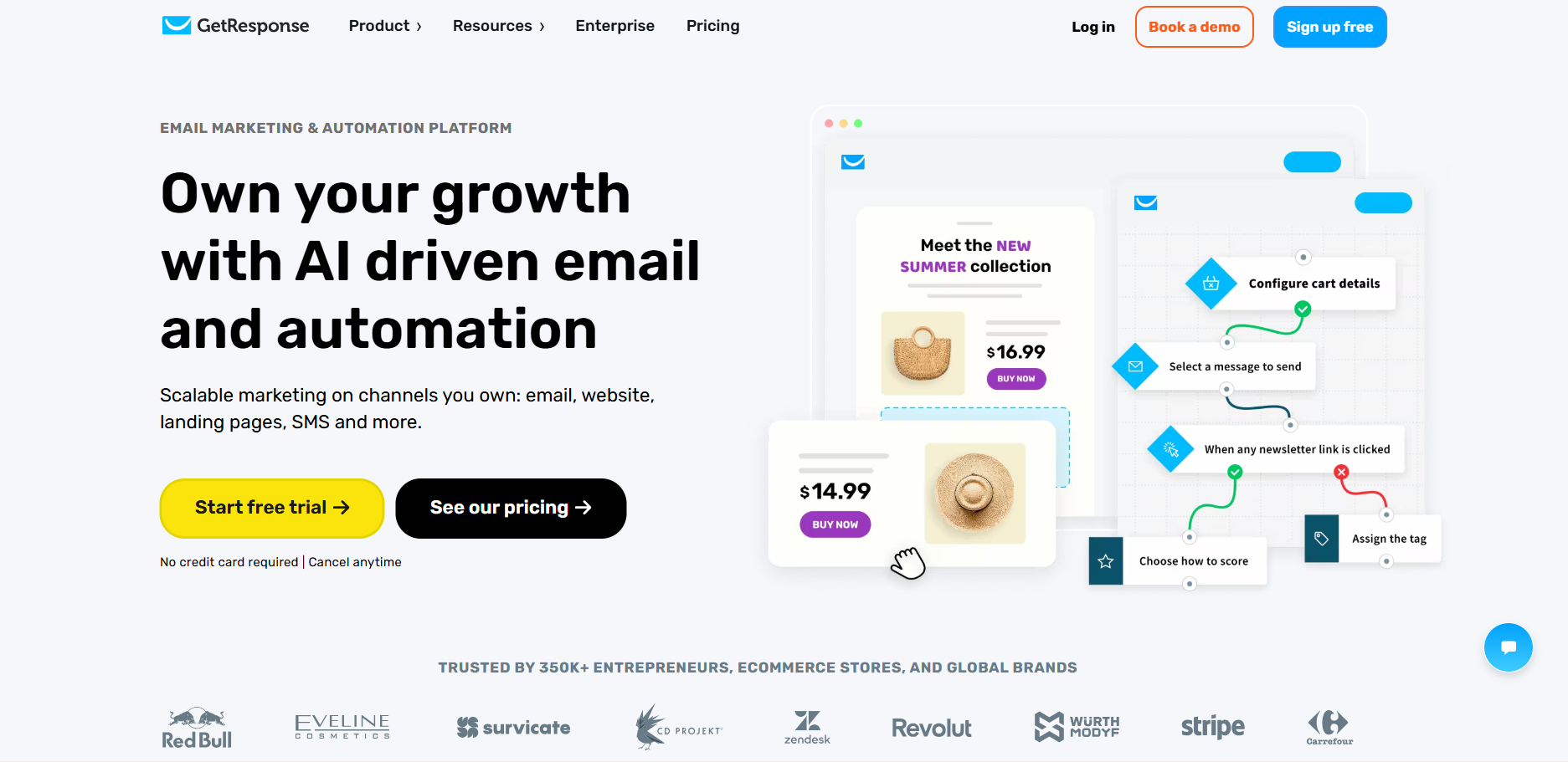 GetResponse is an all-in-one online marketing platform offering email marketing, marketing automation, landing pages, webinars, and more. Tailored for businesses of all sizes, GetResponse simplifies the process of attracting, engaging, and converting customers with its intuitive tools and user-friendly interface. Its robust analytics and integration options make it a favorite among marketers looking for streamlined solutions.