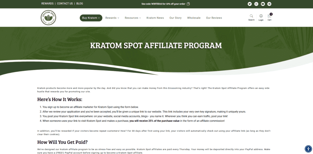 - Research & Apply: Find Kratom programs that align with your audience and content, then apply to join. Many programs will review your platform’s engagement, traffic, and audience demographics before approval.