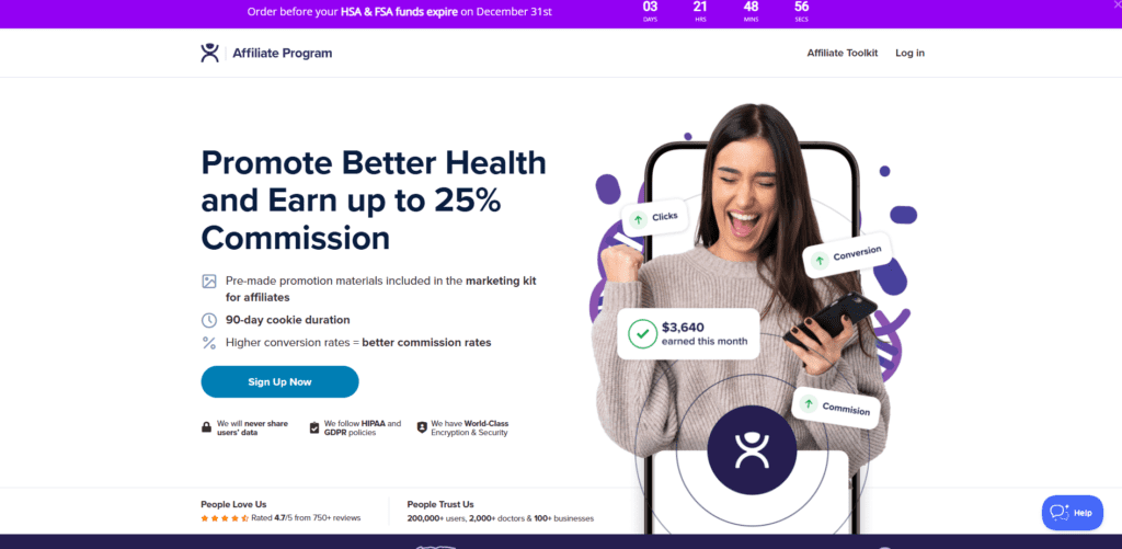 Happyify is a platform that provides science-backed mental wellness exercises and tools. Their affiliate program offers a flat fee per sale, with ongoing support and analytics tools, making it an easy-to-promote option for wellness influencers.