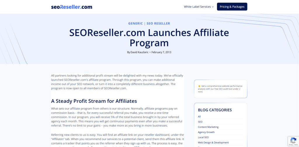 SEOReseller provides an affiliate program with a multi-tiered earning structure, offering consistent opportunities for income generation.