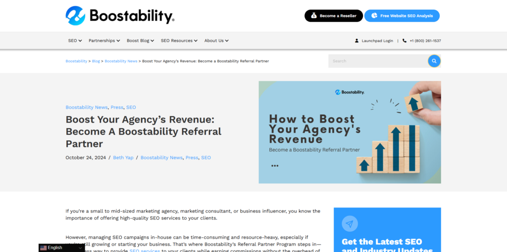 Boostability focuses on affordable SEO services tailored for small businesses, such as local restaurants, family-owned shops, and healthcare practices. Their reseller program is particularly beneficial for agencies serving small to medium-sized businesses.