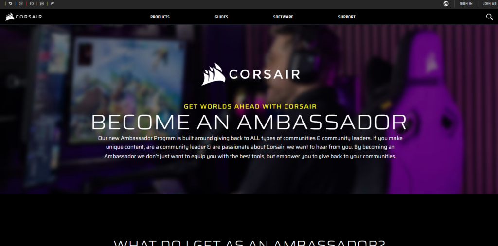 Corsair is a top brand for gaming peripherals, PC components, and streaming gear. Streamers can monetise their channels by joining Corsair’s affiliate program, earning commissions on purchases made through their links. Corsair’s wide range of products ensures affiliates can find something their audience will love, while the brand’s reputation helps increase conversion rates. The program is part of a tiered Ambassador ecosystem ranging from Recruits to Admirals, which offers escalating rewards like free swag, early access to new releases, and even full financial sponsorship for top performers.