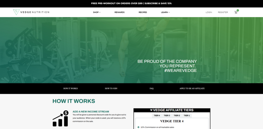 Vedge Nutrition was founded by vegan athletes to provide high-performance plant-based fuel for the fitness community. Their product line includes pea protein isolates, creatine, and pre-workout formulas that are free from dairy and artificial sweeteners. They specifically target gym-goers who want to build muscle and improve recovery without compromising their ethical values. The brand resonates well with the “vegan gains” demographic, offering products that actually taste good and mix well. Affiliates in the fitness niche will find Vedge easy to promote due to its specialized, performance-driven focus.